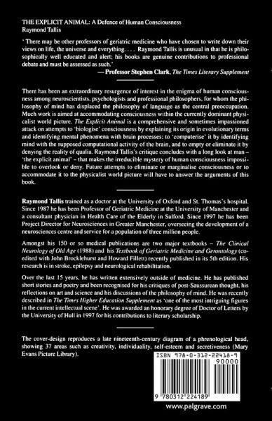 'There may be other professors of geriatric medecine who have chosen to write down their views on life, the universe and everything...Raymond Tallis is unusual in that he is philosophically well educated and alert; his books are genuine contributions to professional debate and must be assessed as such. It is, of course, acutely irritating that someone with a different professional competence should have read more widely, and more attentively, in one's own field than oneself; even more irritating that there are no obvious misreadings...It is to be hoped that Raymond Tallis finds time, amid his professorial and clinical duties, to continue the exploration.' - Professor Stephen Clark, Times Literary Supplement