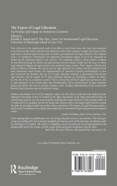 Contents: The export of legal education: its promise and impact in transition countries, Ronald A. Brand; Making a difference: the role of the LL.M. in policy formulation and reform, Wade Channell; A Kenyan experience with LL.M. education, Maurice Oduor; The Socratic method, clinical legal education and mediation: serving the promotion of the rule of law in Serbia, Jelena Arsic; Fighting dragons of the past: the internationalization of legal education at Donetsk National University, Daniil Fedorchuk; The export of American legal education and its impact in Serbia, Milena Ã?ordevic; Damnum iniuria datum and the law of torts: from cases to rules, Marco Gardini; Teaching in Mexico, Luz MarÃa Cárdenas Arenas; The big impact of a small program in the development of rule of law in Kosovo, Vjosa Osmani; Designing and implementing a legal English course to develop the rule of law in the context of transition in Pakistani society, Naveed Ahmad; The impact of the US legal system on Peruvian administrative law, Adolfo Céspedes Zavaleta; Working with precedents to develop the rule of Brazilian commercial law in a global scenario, Daniela Ballão Ernlund; Western education and Eastern development: ensuring effective development assistance in East Asia through capacity building, Jose Luis C. Syquia; Comparative analysis in the area of development of informational and communicational technologies: contemporary US and Uzbek legislation, Timur Arifdjanov; Index.