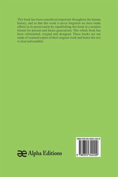 This book has been considered important throughout the human history, and so that this work is never forgotten we have made efforts in its preservation by republishing this book in a modern format for present and future generations. This whole book has been reformatted, retyped and designed. These books are not made of scanned copies and hence the text is clear and readable.