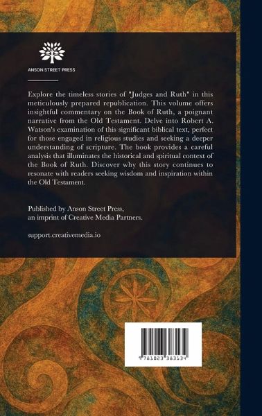 Explore the timeless stories of "Judges and Ruth" in this meticulously prepared republication. This volume offers insightful commentary on the Book of Ruth, a poignant narrative from the Old Testament. Delve into Robert A. Watson's examination of this significant biblical text, perfect for those engaged in religious studies and seeking a deeper understanding of scripture. The book provides a careful analysis that illuminates the historical and spiritual context of the Book of Ruth. Discover why this story continues to resonate with readers seeking wisdom and inspiration within the Old Testament. This work has been selected by scholars as being culturally important, and is part of the knowledge base of civilization as we know it. This work is in the public domain in the United States of America, and possibly other nations. Within the United States, you may freely copy and distribute this work, as no entity (individual or corporate) has a copyright on the body of the work. Scholars believe, and we concur, that this work is important enough to be preserved, reproduced, and made generally available to the public. We appreciate your support of the preservation process, and thank you for being an important part of keeping this knowledge alive and relevant.