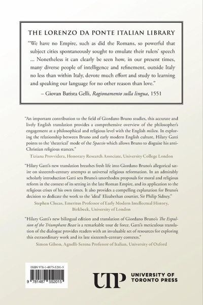 In this work of moral philosophy, Giordano Bruno condemns both the ancient and the modern worlds for filling their skies with bestial vices, and narrates a mythical drama of universal reform designed to replace them with their respective virtues.