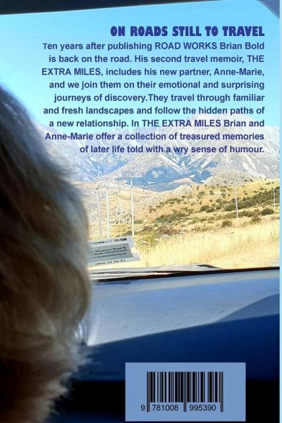 THE EXTRA MILES - On Roads Still To Travel Ten years after publishing ROAD WORKS, Brian Bold is back on the road. His second travel memoir, THE EXTRA MILES, includes his new partner, Anne-Marie, and we join them on their emotional and surprising journeys of discovery. They travel through familiar and fresh landscapes, revisiting old favourites, exploring the excitement of new ones and following the hidden paths of a new relationship. In THE EXTRA MILES Brian and Anne-Marie offer a collection of treasured memories of later life told with a wry sense of humour. Imagine your extra miles as you follow their journeys.
