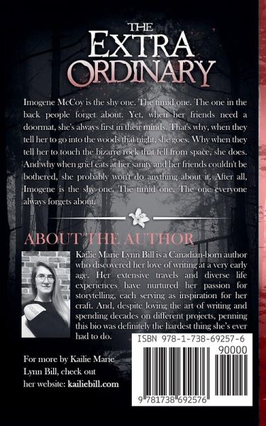 McCoy is the shy one. The timid one. The one in the back people forget about. Yet, when her friends need a doormat, she's always first in their minds. That's why, when they tell her to go into the woods that night, she goes. Why when they tell her to touch the bizarre rock that fell from space, she does. And why when grief eats at her sanity and her friends couldn't be bothered, she probably won't do anything about it. After all, Imogene is the shy one. The timid one. The one everyone always forgets about.
