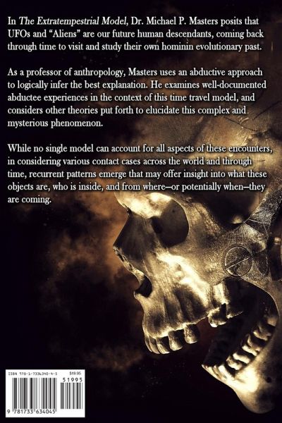In The Extratempestrial Model, Dr. Michael P. Masters posits that UFOs and "Aliens" are our future human descendants, coming back through time to visit and study their own hominin evolutionary past. As a professor of anthropology, Masters uses an abductive approach to logically infer the best explanation. He examines well-documented abductee experiences in the context of this time travel model, and considers other theories put forth to elucidate this complex and mysterious phenomenon. While no single model can account for all aspects of these encounters, in considering various contact cases across the world and through time, recurrent patterns emerge that may offer insight into what these objects are, who is inside, and from where-or potentially when-they are coming.