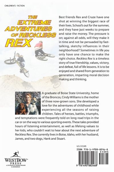 Best friends Rex and Cruze have one shot at winning the biggest race of their lives. School's out for the summer, and they have just weeks to prepare and raise the money. The pressure is on; against all odds, will they make it in time and not be persuaded by fast-talking, sketchy influences in their neighborhood? Sometimes in life you only have one chance to make the right choice. Reckless Rex is a timeless story of true friendship, values, victory, and defeat, full of life lessons. It is to be enjoyed and shared from generation to generation, imparting moral decision making and thinking.