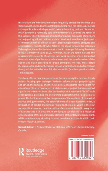 This book offers a new interpretation of the extreme right in interwar French politics, focusing upon the largest and most influential such groups in 1920s and 1930s, the Faisceau and the Croix de Feu. It explores their designs for extensive political, economic, and social renewal, a project that commanded significant attention from the leadership and rank-and-file of both organizations, providing the overarching goal behind their aspiration to power. The book contributes to a historical understanding of the programmatic elements of the interwar extreme-right, while simultaneously situating its most prominent exponents within their broader historical context.