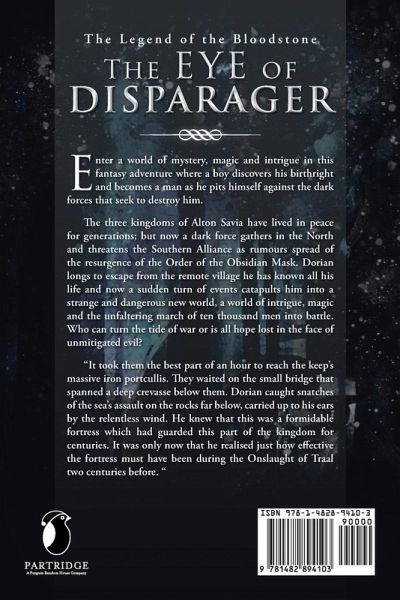 The three kingdoms of Alton Savia have lived in peace for generations; but now a dark force gathers in the North and threatens the Southern Alliance as rumours spread of the resurgence of the Order of the Obsidian Mask. Dorian longs to escape from the remote village he has known all his life and now a sudden turn of events catapults him into a strange and dangerous new world, a world of intrigue, magic and the unfaltering march of ten thousand men into battle. Who can turn the tide of war or is all hope lost in the face of unmitigated evil?