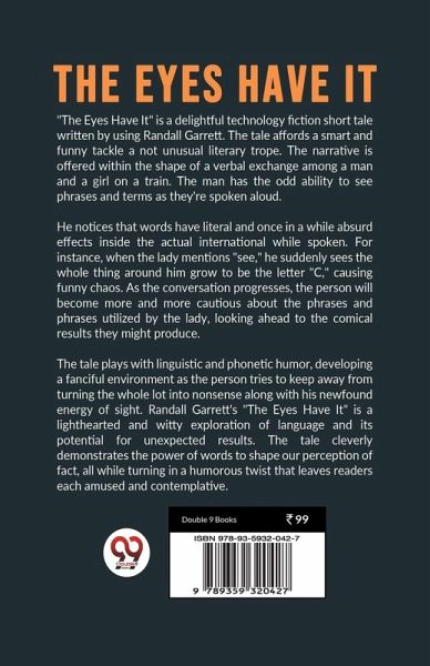 "The Eyes Have It" is a delightful technology fiction short tale written by using Randall Garrett. The tale affords a smart and funny tackle a not unusual literary trope. The narrative is offered within the shape of a verbal exchange among a man and a girl on a train. The man has the odd ability to see phrases and terms as they're spoken aloud. He notices that words have literal and once in a while absurd effects inside the actual international while spoken. For instance, when the lady mentions "see," he suddenly sees the whole thing around him grow to be the letter "C," causing funny chaos. As the conversation progresses, the person will become more and more cautious about the phrases and phrases utilized by the lady, looking ahead to the comical results they might produce. The tale plays with linguistic and phonetic humor, developing a fanciful environment as the person tries to keep away from turning the whole lot into nonsense along with his newfound energy of sight. Randall Garrett's "The Eyes Have It" is a lighthearted and witty exploration of language and its potential for unexpected results. The tale cleverly demonstrates the power of words to shape our perception of fact, all while turning in a humorous twist that leaves readers each amused and contemplative.