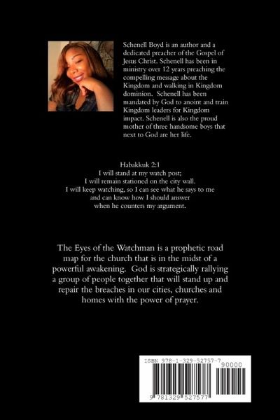 The Eyes of the Watchman is a prophetic road map to guide the church triumphant back to the position and posture of prayer. Habakkuk 2:1 I will stand at my watch post; I will remain stationed on the city wall.