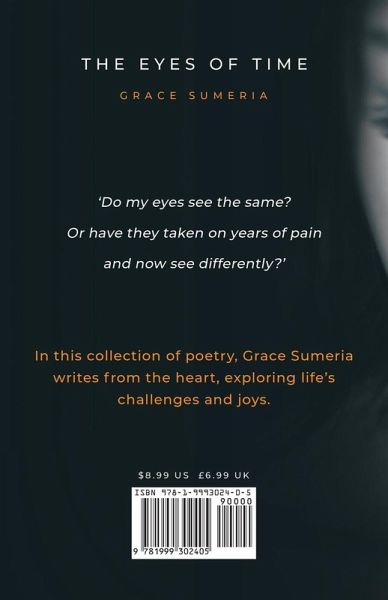 'Do my eyes see the same Or have they taken on years of pain and now see differently?' In The Eyes of Time, her debut poetry collection, Grace Sumeria explores the universal, ageless themes of life. Through observing life, listening to her heart and writing to heal she has brought together this collection of poetry. The varying themes include: living with a narcissistic mother; love; deep sadness; social injustice; childlessness; freedom; healing; hope. About the Author: Grace Sumeria started writing in a diary in her teenage years. At age 16, she discovered poetry whilst studying English Literature. Her love of writing poetry continued through the years and in addition to her journal reflections, writing poems allowed her to observe life. Now in her 40s, Grace uses writing as a healing tool and has fully embraced her writing life. Writing under this nom de plume has allowed Grace to address themes of her life, which would have otherwise have remained hidden. It has allowed her to reach into her inner depths and bring about the healing she needed. Grace lives on the South Coast of England with her husband. The Eyes Of Time is her first poetry collection and includes poems from those early years.