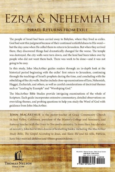 John MacArthur takes readers through the books of Ezra and Nehemiah, beginning with Ezraâ s early return to Jerusalem, continuing through the teachings of Israelâ s prophets during the time, and concluding with Nehemiah and the peopleâ s rebuilding efforts in the city.