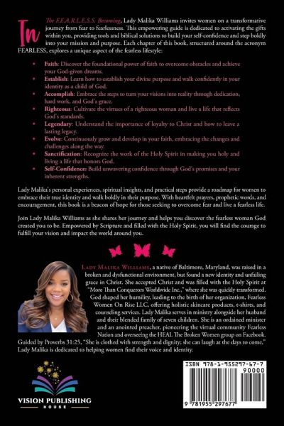 In The F.E.A.R.L.E.S.S. Becoming, Lady Malika Williams invites women on a transformative journey from fear to fearlessness. This empowering guide is dedicated to activating the gifts within you, providing tools and biblical solutions to build your self-confidence and step boldly into your mission and purpose. Each chapter of this book, structured around the acronym FEARLESS, explores a unique aspect of the fearless lifestyle: -Faith: Discover the foundational power of faith to overcome obstacles and achieve your God-given dreams. -Establish: Learn how to establish your divine purpose and walk confidently in your identity as a child of God. -Accomplish: Embrace the steps to turn your visions into reality through dedication, hard work, and God's grace. -Righteous: Cultivate the virtues of a righteous woman and live a life that reflects God's standards. -Legendary: Understand the importance of loyalty to Christ and how to leave a lasting legacy. -Evolve: Continuously grow and develop in your faith, embracing the changes and challenges along the way. -Sanctification: Recognize the work of the Holy Spirit in making you holy and living a life that honors God. -Self-Confidence: Build unwavering confidence through God's promises and your inherent strengths. Lady Malika's personal experiences, spiritual insights, and practical steps provide a roadmap for women to embrace their true identity and walk boldly in their purpose. With heartfelt prayers, prophetic words, and encouragement, this book is a beacon of hope for those seeking to overcome fear and live a fearless life. Join Lady Malika Williams as she shares her journey and helps you discover the fearless woman God created you to be. Empowered by Scripture and filled with the Holy Spirit, you will find the courage to fulfill your vision and impact the world around you.