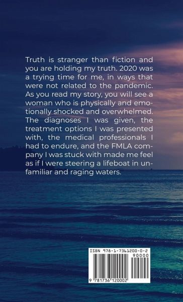 Truth is stranger than fiction and you are holding my truth. 2020 was a trying time for me, in ways that were not related to the pandemic. As you read my story, you will see a woman who is physically and emotionally shocked and overwhelmed. The diagnoses I was given, the treatment options I was presented with, the medical professionals I had to endure, and the FMLA company I was stuck with made me feel as if I were steering a lifeboat in unfamiliar and raging waters.