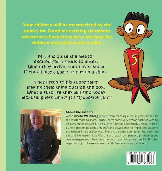 Your children will be mesmerized by the quirky Mr. B and his exciting classroom adventures. Each story has a message for children and adult readers alike. Mr. B is quite the mentor excited for his kids to enter. When they arrive, they never know if they'll play a game or put on a show. They listen to his funny talks making them think outside the box. What a surprise they will find today because, guess what? It's "Opposite Day"!