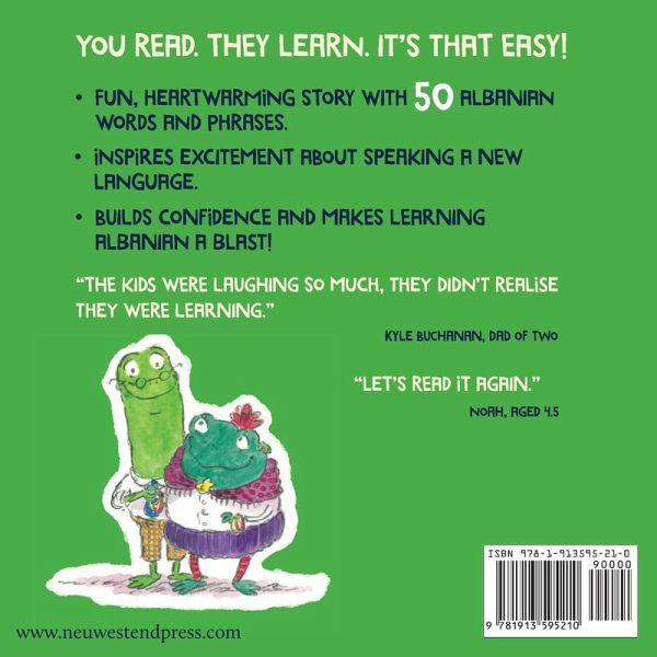 A little mouse walks into the Lost & Found, but can only speak Albanian. How will Mr and Mrs Frog figure out what the mouse is missing...? Aimed at children aged 2-7, the unique 'Story-powered language learning method' combines humour, story and emotion to gently and memorably introduce kids to 50 Albanian words and phrases. "The kids were so busy laughing they didn't realise they were learning." Kyle Buchannan, Dad of two, London. It's a bilingual Albanian English children's book with a difference, that helps lay the foundations of a love of languages. Reviews: "I love that I can introduce my kids to a new language without it feeling like homework." Zoe Reynolds, UK "Let's read it again." Noah, aged 4.5 "Utterly charming story, making use of children's natural approach to learning language" Madalena Xanthopoulou, We live Languages. "A wonderful book to introduce a new language into the classroom." Rohan Plunkett, Deputy Head, Akiva Primary School. How does the Story Powered Language Learning Method work? Unlike a Albanian picture dictionary, traditional Albanian books for kids, dual language bilingual Albanian English children's books, Albanian learning books for kids, or other Albanian language learning book for kids, the Fabulous Lost and Found uses the 'Story-powered Language Learning Method' to teach children Albanian by tapping into a child's natural abilities. There are three steps:We create an emotionally engaging and funny story for children and adults to enjoy together, just like any of the other Albanian storybooks for kids. Studies show that social interaction, like enjoying a book together, is critical in language learning. Through the story, we introduce a relatable character who speaks only in the new language. This helps build empathy and a positive attitude towards people who speak different languages. These are both important aspects in laying the foundations for lasting language acquisition in a child's life. As the story in this Albanian picture book progresses, the child naturally works with the characters to discover the meanings of a wide range of fun new words and phrases. Strategic use of humour ensures that this subconscious learning is rewarded with laughter; the child feels good and the first seeds of a lifelong love of language are sown. Message from the Author Mark Pallis There is a special magic about learning words another language and using them: I truly think it warms the heart. I've learnt jokes or songs in ten languages so far and it's brought me so much joy. Albanian books for learning Albanian can be fun. This Albanian books for baby is first and foremost a really enjoyable story, but it's also my way of helping little learners engage with a new language, empathise with strangers and ultimately build a love of languages. And it happens without them realising. Any parent who has ever tried to smuggle vegetables into pasta sauce will know that you can get a lot of good stuff into things without kids realising. This book is the same! Albanian language learning for kids can be fun. I want you all to have fun together and enjoy the story. All the learning is a bonus; the icing on the cake (or the extra veg in the sauce!). The idea that after a few reads, kids will be able to go up to a native speaker and tell them in their own language: 'I've lost my hat' fills me with joy. Imagine how proud the child will feel. And imagine how proud you'll feel too! I hope you have as much fun reading this Albanian English book for kids as I had writing it. Learn Albanian kids! Mark (Preschool books Albanian, how to teach Albanian to a chi