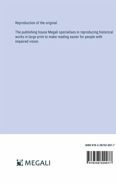 Reproduction of the original. The publishing house Megali specialises in reproducing historical works in large print to make reading easier for people with impaired vision.