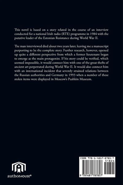 This novel is based on a story related in the course of an interview conducted for a national Irish radio (RTE) programme in 1984 with the putative leader of the Estonian Resistance during World War II. The man interviewed died about two years later, leaving me a manuscript purporting to be the complete story. Further research, however, opened up quite a different perspective from which a former lieutenant began to emerge as the main protagonist. If his story could be verified, which seemed impossible, it would connect him with one of the great thefts of ancient art perpetrated during World War II. It would also connect him with an international incident that severely strained relations between the Russian authorities and Germany in 1993 when a number of these stolen items were displayed in Moscow's Pushkin Museum.