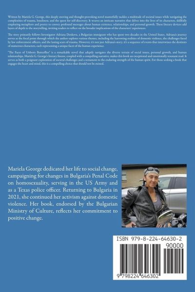 Written by Mariela G. George, this deeply moving and thought-provoking novel masterfully tackles a multitude of societal issues while navigating the complexities of trauma, loneliness, and the quest for self-discovery. It weaves an intricate narrative that delves into the lives of its characters, skillfully employing metaphors and poetry to convey profound messages about human existence, relationships, and personal growth. These literary devices add layers of depth to the storytelling, inviting readers to reflect on the broader implications of the characters' experiences. The story primarily follows Investigator Adriana Denkova, a Bulgarian immigrant who has spent two decades in the United States. Adriana's journey serves as the focal point through which the author explores various themes, including the harrowing realities of domestic violence, the challenges faced by law enforcement officers, and the lasting scars of trauma. However, it's not just Adriana's story; it's a sequence of events that intertwines the destinies of numerous characters, each representing a unique facet of the human experience. "The Faces of Unborn Butterflies" is a remarkable novel that adeptly navigates the diverse terrain of social issues, personal growth, and human relationships. Mariela G. George's literary finesse, coupled with a compelling narrative, makes this book an exceptional and emotionally resonant read. It serves as both a poignant exploration of societal challenges and a testament to the enduring strength of the human spirit. For those seeking a book that engages the heart and mind, this is a compelling choice that should not be missed.