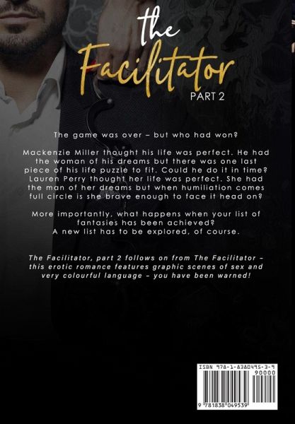 The game was over - but who had won? Mackenzie Miller thought his life was perfect. He had the woman of his dreams but there was one last piece of his life puzzle to fit. Could he do it in time? Lauren Perry thought her life was perfect. She had the man of her dreams but when humiliation comes full circle is she brave enough to face it head-on? More importantly, what happens when your list of fantasies has been achieved? A new list has to be explored, of course. The Facilitator, part 2 follows on from The Facilitator - this erotic romance features graphic scenes of sex and very colourful language - you have been warned! For readers over the age of 18. Available in audio, ebook, paperback, large print, and hardback.