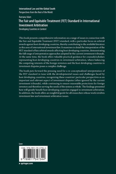 The book puts forward the pressing need for a re-conceptualized interpretation of the FET standard in tune with the developmental issues and challenges faced by host developing countries, recognizing these countries' particular perspectives as an important and relevant aspect of investment disputes (often ignored by the current investment tribunals), while continuing to ensure reasonable protections for foreign investors and therefore serving the needs of the system as whole. The findings presented here will greatly benefit host developing countries engaged in investment arbitration. In addition, the book offers an insightful guide for all researchers whose work involves investment law and investment arbitration issues.