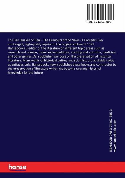 The Fair Quaker of Deal - The Humours of the Navy - A Comedy is an unchanged, high-quality reprint of the original edition of 1791.