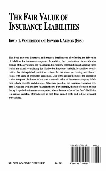 This book explores theoretical and practical implications of reflecting the fair value of liabilities for insurance companies. In addition, the contributions discuss the disclosure of these values to the financial and regulatory communities and auditing firms which are actually calculating this illusive but important variable. It combines contributions by distinguished practitioners from the insurance, accounting and finance fields, with those of prominent academics. One of the central themes of the collection is that adequate disclosure of the true economic value of insurance company liabilities is both possible and desirable. Wherever possible, the insurance valuation process is wedded with modern financial theory. For example, the use of option pricing theory is applied to insurance companies, where the true value of the firm's liabilities is a critical variable. Methods such as cash flow, earned profit and indirect discount are explored.