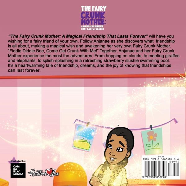 "The Fairy Crunk Mother: A Magical Friendship That Lasts Forever" will have you wishing for a fairy friend of your own. Follow Anjanae as she discovers what friendship is all about, making a magical wish and awakening her very own Fairy Crunk Mother. "Fiddle Diddle Bee, Come Get Crunk With Me!" Together, Anjanae and her Fairy Crunk Mother experience the most fun adventures. From hopping on clouds, to meeting giraffes and elephants, to splish-splashing in a refreshing strawberry slushie swimming pool. It's a heartwarming tale of friendship, dreams, and the joy of knowing that friendships can last forever.