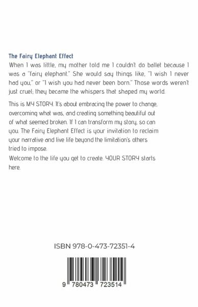 The Fairy Elephant Effect is more than a book-it's an invitation to transform the way you see yourself, your past, and your potential. Authored by Elysabeth Wolter, this powerful memoir blends raw, heartfelt storytelling with actionable insights to help you reclaim your true, whole self. It's a guide for those who have ever felt the weight of others' expectations, struggled with limiting beliefs, or battled the lingering effects of past experiences. Through deeply personal narratives, Elysabeth shares her journey of navigating trauma, loss, and emotional challenges, while discovering tools like EFT (Emotional Freedom Technique) to rewrite her story and heal. Her reflections on pivotal moments-like overcoming complex PTSD, finding courage after the loss of loved ones, and breaking free from societal norms-invite readers to confront their own struggles with compassion and strength. But this book is more than just Elysabeth's story; it's a mirror for yours. It explores universal themes like the importance of self-responsibility, the courage to choose oneself, and the power of transforming inner narratives. Elysabeth addresses societal patterns such as co-dependency, the search for external validation, and unhealthy relationship dynamics, providing relatable insights and practical steps to break free and thrive. What sets this book apart is its blend of vulnerability, empowerment, and practical wisdom. It's a resource for anyone yearning to live a more authentic, fulfilling life. Whether you're seeking to overcome emotional pain, navigate difficult relationships, or unlock your inner power, The Fairy Elephant Effect offers tools and inspiration to help you step into your highest potential. By the time you turn the last page, you'll feel seen, supported, and ready to create the life you deserve. If you're ready to explore what's holding you back, shed the stories that no longer serve you, and embrace the magic of your own transformation, this book is for you.