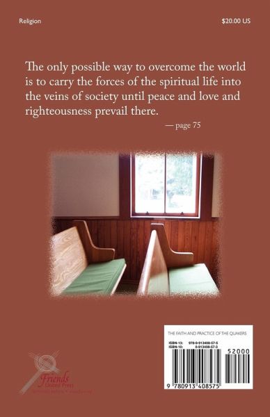 In-depth discussion of the Quaker method of worship and business, sacraments as an attitude toward life, simplicity, peacemaking, education, and service to others. Reprint of 1927 edition.