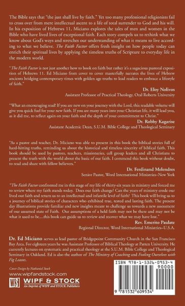 The Bible says that ""the just shall live by faith."" Yet too many professional religionists fail to cross over from mere intellectual ascent to a life of total surrender to God and his will. In his exposition of Hebrews 11, Miciano explores the tales of men and women in the Bible who have lived lives of exceptional faith. Each story compels us to rethink what we know about God's ways and stretches our understanding of what it means to live according to what we believe. The Faith Factor offers fresh insight on how people today can enrich their spiritual lives by applying the timeless truths of Scripture to everyday life in the modern world.