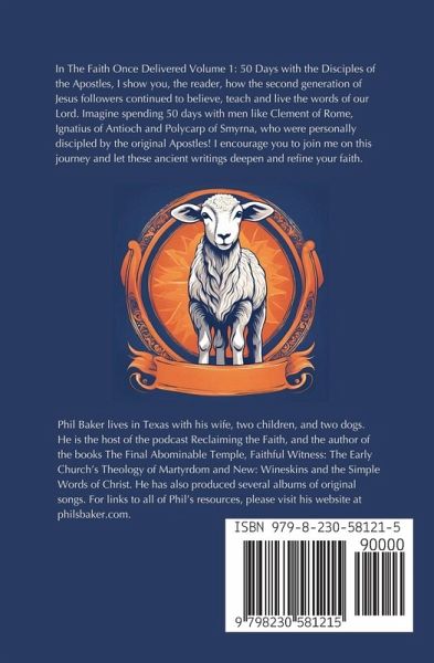 In The Faith Once Delivered Volume 1: 50 Days with the Disciples of the Apostles, I show you, the reader, how the second generation of Jesus followers continued to believe, teach and live the words of our Lord. Imagine spending 50 days with men like Clement of Rome, Ignatius of Antioch and Polycarp of Smyrna, who were personally discipled by the original Apostles! I encourage you to join me on this journey and let these ancient writings deepen and refine your faith.