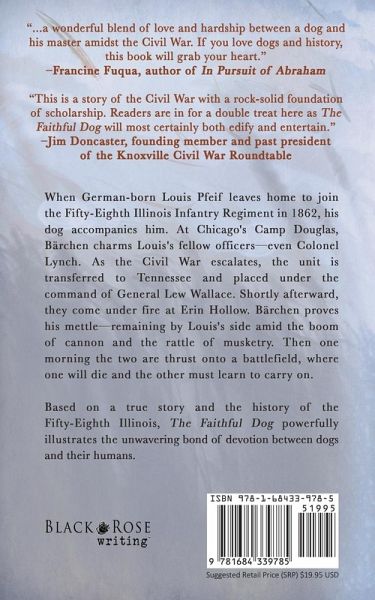 "An engaging, touching, and heartbreaking adventure." -Kirkus Review When German-born Louis Pfeif leaves home to join the Fifty-Eighth Illinois Infantry Regiment in 1862, his dog accompanies him. At Chicago's Camp Douglas, Bärchen charms Louis's fellow officers-even Colonel Lynch. As the Civil War escalates, the unit is transferred to Tennessee and placed under the command of General Lew Wallace. Shortly afterward, they come under fire at Erin Hollow. Bärchen proves his mettle-remaining by Louis's side amid the boom of cannon and the rattle of musketry. Then one morning the two are thrust onto a battlefield, where one will die and the other must learn to carry on. Based on a true story and the history of the Fifty-Eighth Illinois, The Faithful Dog powerfully illustrates the unwavering bond of devotion between dogs and their humans.