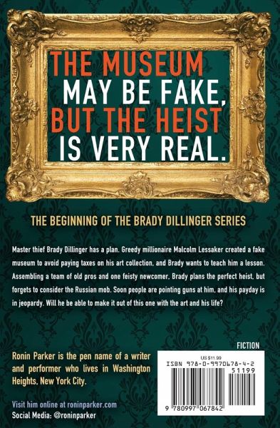 The heist is real, but the museum is fake. Master thief Brady Dillinger has a plan. Greedy millionaire Malcolm Lessaker has created a fake museum to avoid paying taxes on his art collection, and Brady wants to teach him a lesson. Assembling a team of old pros and one feisty newcomer, Brady plans the perfect heist, but forgets to consider the Russian mob. Soon people are pointing guns at him, and his payday is in jeopardy. Will he be able to get out of this situation with the art and his life? A witty and stylish thriller, this is a must-read new series for fans of comic heists, Ocean's 11 movies, the Lupin TV series, Donald E. Westlake's Dortmunder, and Lawrence Block's Bernie Rhodenbarr.