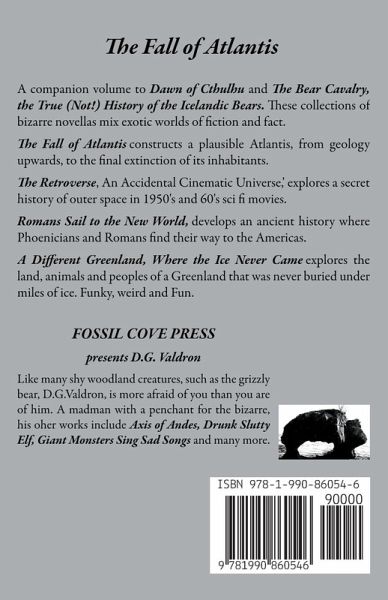 'The Fall of Atlantis' is a companion volume to 'Dawn of Cthulhu,' frm the author of the 'Mermaid's Tale' and 'Giant Monsters Sing Sad Songs.' These collections of bizarre novellas mix exotic worlds of fiction and fact. 'The Fall of Atlantis' constructs a plausible Atlantis, from geology upwards, to the final extinction of its inhabitants. 'The Retroverse, An Accidental Cinematic Universe,' explores a secret history of outer space in 1950's and 60's sci fi movies. 'Romans Sail to the New World,' develops an ancient history where Phoenicians and Romans find their way to the Americas; and 'A Different Greenland, Where the Ice Never Came' explores the land, animals and peoples of a Greenland that was never buried under miles of ice. Funky, weird and Fun.