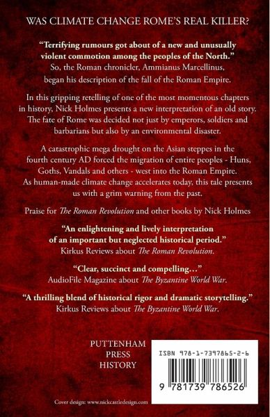 WHY DID ROME FALL? In this gripping retelling of one of the most momentous chapters in history, Nick Holmes presents a new interpretation of an old story. The fate of Rome was decided not just by emperors, soldiers and barbarians but also by an environmental disaster. A catastrophic megadrought on the Asian steppes in the fourth century AD forced the migration of entire peoples - Huns, Goths, Vandals and others - west into the Roman Empire. They met an empire weakened from war with Persia. Rome's misfortunes multiplied as it made tactical errors on the battlefield. Civil war, religious unrest and political incompetence compounded a worsening situation. The result was one of the greatest disasters in the ancient world - the sack of Rome by the Goths in AD 410. This is the second book in a multi-volume series on the Fall of the Roman Empire. The first book, The Roman Revolution, describes 'the crisis of the third century' and Rome's adoption of Christianity. The third book, due out later in 2023, will continue with the fall of the western empire and the rise of Attila the Hun. Praise for The Roman Revolution and other books by Nick Holmes "An enlightening and lively interpretation of an important but neglected historical period." Kirkus Reviews about The Roman Revolution. "Clear, succinct and compelling..." AudioFile Magazine about The Byzantine World War. "A thrilling blend of historical rigor and dramatic storytelling." Kirkus Reviews about The Byzantine World War.