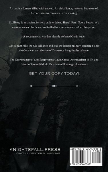 An ancient fortress filled with undead. An old alliance, renewed but untested. A confrontation centuries in the making. Skullkeep is an ancient fortress built to defend Hope's Pass. Now a bastion of a massive undead horde and controlled by a necromancer of terrible power. A necromancer who has already defeated Gavin once. Gavin must rally the Old Alliance and lead the largest military campaign since the Godswar, and the fate of Drakmoor hangs in the balance. The Necromancer of Skullkeep versus Gavin Cross, Archmagister of Tel and Head of House Kirloth. Only one will emerge victorious. Get your copy today!
