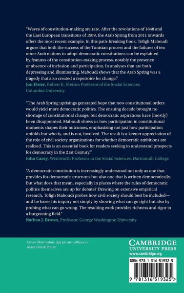 1. Constitutions, civil society, and democratization in the Arab world 2. Democratizing the parchments: the impact of process on the democratic content of constitutions 3. Constitutional negotiations and the pathway to democratic transition: The case of Tunisia 4. Pathways of Failure: the importance of the process 5. Pathways of failure: the importance of civil society 6. Pathways of failure: the importance of constitutional design 7. Lessons from the 'Fall' of the Arab Spring.