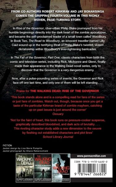 From co-authors Robert Kirkman and Jay Bonansinga, comes the gripping fourth volume in this richly woven, page-turning story. In Rise of the Governor, über-villain Philip Blake journeyed from his humble beginnings directly into the dark heart of the zombie apocalypse, and became the self-proclaimed leader of a small town called Woodbury. In Book Two, The Road to Woodbury, an innocent traveller named Lilly Caul wound up in the terrifying thrall of Phillip Blake's twisted, violent dictatorship within Woodbury's ever-tightening barricades. In The Fall of the Governor, Part One, classic characters from both the comic and television series, including Rick, Michonne and Glenn, finally made their appearance in the Walking Dead novel series, only to discover that the Governor is a very dangerous enemy. Now, after a pulse-pounding series of events, the Governor and Rick face off one last time, and only one of them will be left standing . . . Praise for The Walking Dead: Rise of the Governor 'This book stands alone and is a compelling read for fans of the series or just fans of zombies. Watch out, though, because once you get a taste of the particular Kirkman brand of zombie mayhem, catching up on past issues is just around the corner' Ossuary 'Not for the faint of heart, this book runs on pressure-cooker suspense, graphically described bloodshed, and dark acts of brutality. . . . This riveting character study adds a new dimension to the oeuvre by fleshing out established characters and plot lines' School Library Journal [Thumbnails of the previous book covers]