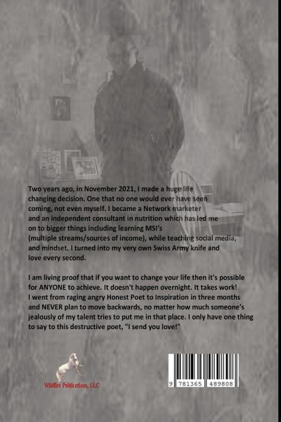 Over the last two years I have learnt so much about the Universal laws, network marketing, and how to be kind to myself, while also realizing that we only get one go at the bite of the apple called 'life.' During the putting together of this book I became life threateningly ill. My dislike of Christmas went and now I am doing everything I can to make sure that next Christmas I celebrate it as well as making sure I never spend another alone. When you start clutching your chest and realize that there is no one to tell if anything was to happen? Well, this is when you realize that you deserve better. I now have many tests and investigations to undergo. Yes, I am scared, but I would rather fight whatever this is earlier rather than waiting until it's too late. If it hadn't been for two people constantly in my inbox during my hospital stays, then what is going on in my body wouldn't have been detected, as our glorious NHS chose to ignore everything I was saying. But these two people gave me the courage to stand my ground. I got my second opinion and they found something. This book is the run up to the book that myself and Raw Diamond have written together on homelessness, and a few of the last poems in this book got me threatened by another Poet who doesn't like my honesty, or that of it being posted on my wall. It's called freedom of speech and I refuse to play victim. I keep my emotional health in line by taking my vitamins every day. This also helps with my focus. My journey has had its ups and downs, but I wouldn't change a single thing as I love who I am shaping up to be. Stay beautiful and seek out the beauty even when it's difficult, there is always a silver lining.