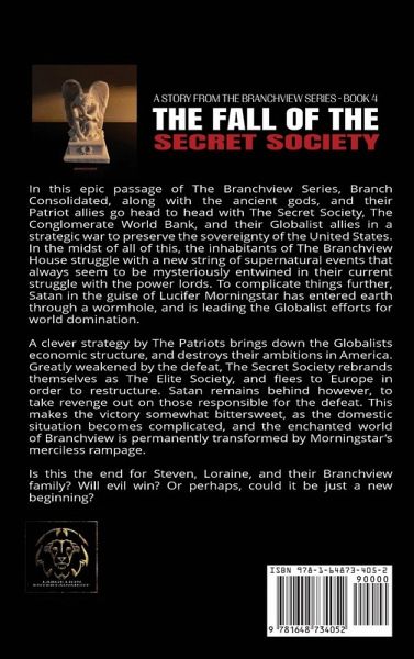 In this epic passage of The Branchview Series, Branch Consolidated, along with the ancient gods, and their Patriot allies go head to head with The Secret Society, The Conglomerate World Bank, and their Globalist allies in a strategic war to preserve the sovereignty of the United States. In the midst of all of this, the inhabitants of The Branchview House struggle with a new string of supernatural events that always seem to be mysteriously entwined in their current struggle with the power lords. To complicate things further, Satan in the guise of Lucifer Morningstar has entered earth through a wormhole, and is leading the Globalist efforts for world domination. A clever strategy by The Patriots brings down the Globalists economic structure, and destroys their ambitions in America. Greatly weakened by the defeat, The Secret Society rebrands themselves as The Elite Society, and flees to Europe in order to restructure. Satan remains behind however, to take revenge out on those responsible for the defeat. This makes the victory somewhat bittersweet, as the domestic situation becomes complicated, and the enchanted world of Branchview is permanently transformed by Morningstar's merciless rampage. Is this the end for Steven, Loraine, and their Branchview family? Will evil win? Or perhaps, could it be just a new beginning?