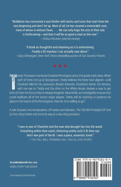 "McMahon has concocted a taut thriller with twists and turns that start from the very beginning and don't let up. Most of all, he has created a memorable cast, none of whom is without flaws. . . . Something else he does well? He leaves us wanting more. . . . We can only hope the rest of their tale is forthcoming-and that it will be as good a read as this one." -Kirkus Reviews (starred review) "A book as thoughtful and charming as it is entertaining. Finally a DC mystery I can actually care about." - Gary Shteyngart, New York Times bestselling author of Our Country Friends Teddy Thompson has loved Charlotte Pennington since 2nd grade math class. When both of them end up at Georgetown, Teddy believes the fates have aligned-until Charlotte falls for his roommate, Braden Edwards. Charlotte's father, the Senator, with one eye on Teddy and the other on the White House, devises a way to get both of them the future they've always imagined. Meanwhile, an investigation ensues that could implicate all of the story's major players. Teddy will do anything to preserve his place in the hearts of the Penningtons. How far is he willing to go? A tale of power and manipulation, of fixation and delusion, The Fall Will Probably Kill You! (a love story) twists and turns its way to a daunting precipice. "I was in awe of Charlotte and the man who brought her into the world. Everything within their reach, distorting reality until it fit their eye. And I was part of the fit. I was a piece, essential, loved." - THE FALL WILL PROBABLY KILL YOU! (A LOVE STORY)
