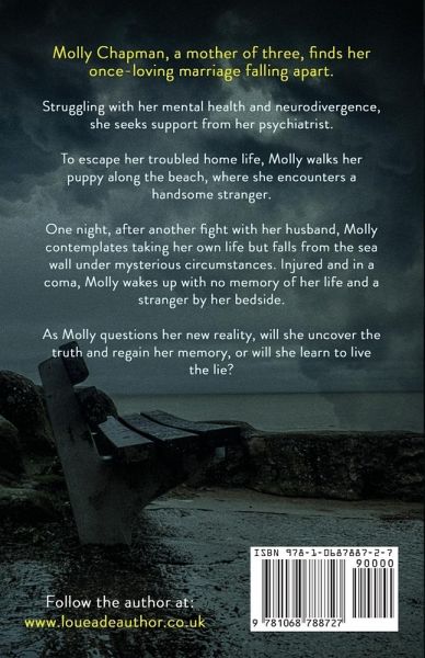 Molly Chapman, a mother of three, finds her once-loving marriage falling apart. Struggling with her mental health and neurodivergence, she seeks support from her psychiatrist. To escape her troubled home life, Molly walks her puppy along the beach, where she encounters a handsome stranger. One night, after another fight with her husband, Molly contemplates taking her own life but falls from the sea wall under mysterious circumstances. Injured and in a coma, Molly wakes up with no memory of her life and a stranger by her bedside. As Molly questions her new reality, will she uncover the truth and regain her memory, or will she learn to live a the lie?