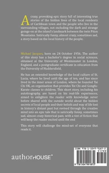 A crazy, provoking epic story full of interesting true stories of the hidden lives of the local residents of Caribbean town and the people who live in the surrounding villages, not excluding the dark and strange goings-on at the island's landmark between the twin Piton Mountains. Satirically funny, almost crazy, sometimes sad, a story based on the local history of the people.
