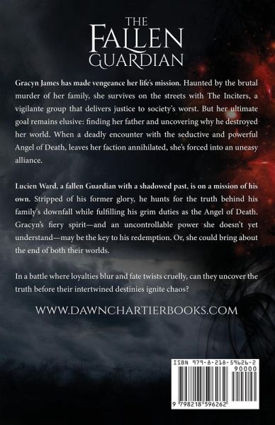 When Darkness Tempts the Divine Gracyn James has made vengeance her life's mission. Haunted by the brutal murder of her family, she survives on the streets with The Inciters, a vigilante group that delivers justice to society's worst. But her ultimate goal remains elusive: finding her father and uncovering why he destroyed her world. When a deadly encounter with the seductive and powerful Angel of Death, leaves her faction annihilated, she's forced into an uneasy alliance. Lucien Ward, a fallen Guardian with a shadowed past, is on a mission of his own. Stripped of his former glory, he hunts for the truth behind his family's downfall while fulfilling his grim duties as the Angel of Death. Gracyn's fiery spirit-and an uncontrollable power she doesn't yet understand-may be the key to his redemption. Or, she could bring about the end of both their worlds. In a battle where loyalties blur and fate twists cruelly, can they uncover the truth before their intertwined destinies ignite chaos?