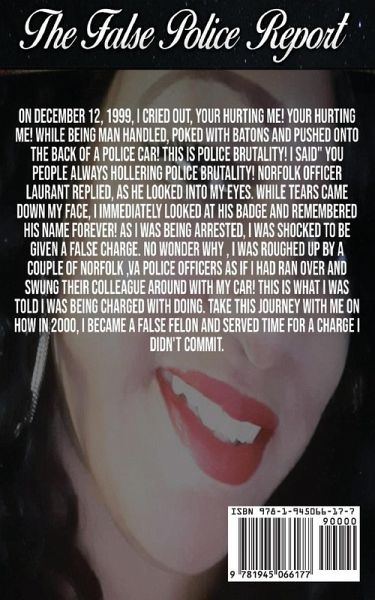 On December 12, 1999, I cried out, you're hurting me! You're hurting me! While being manhandled, poked with batons, and pushed onto the back of a police car! This is police brutality! I said, "You people always hollering police brutality!" Norfolk officer Laurant replied as he looked into my eyes. While tears came down my face, I immediately looked at his badge and remembered his name forever! As I was being arrested, I was shocked to be given a false charge. No wonder why, I was roughed up by a couple of Norfolk, VA police officers as if I had ran over and swung their colleague around with my car! This is what I was told I was being charged with doing. Take this journey with me on how in 2000, I became a false felon and served time for a charge I didn't commit.
