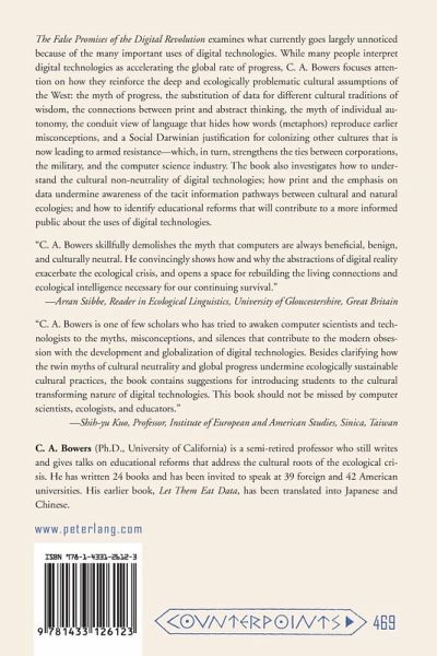 «No one has taught me more about the link between the ecological crisis and education than C. A. Bowers. When so many educators regarded computers as the newest pedagogical savior, Bowers was asking the hard questions. Bowers continues to peel away the shiny packaging of 'progress' and the myths of the new digital age. I'm delighted that Bowers is still challenging us to evaluate the 'false promises of the digital revolution.' We need this analysis now more than ever.» (Bill Bigelow, Editor, 'Rethinking Schools')