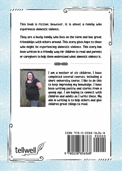 This book is fiction; however, it is about a family who experiences domestic violence. They are a lovely family who lives on the farm and has great friendships with others around. This story gives hope to those who might be experiencing domestic violence. This story has been written in a friendly way for children to read and parents or caregivers to help them understand what domestic violence is.