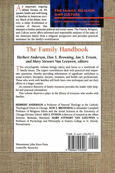 This encyclopedic volume brings clarity and focus to a multitude of family issues. The expert contributors deal with practical and important questions, thereby providing information of significant usefulness to social workers, therapists, lawyers, ministers, and health care professionals. Those who work with families will both learn new techniques and see their efforts in a larger context. An extensive directory of family resources provides the reader with helpful and practical information.