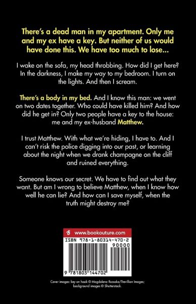 There's a dead man in my apartment. Only me and my ex have a key. But neither of us would have done this. We have too much to lose... I wake on the sofa, my head throbbing. How did I get here? In the darkness, I make my way to my bedroom. I turn on the lights. And then I scream. There's a body in my bed. And I know this man: we went on two dates together. Who could have killed him? And how did he get in? Only two people have a key to the house: me and my ex-husband Matthew. I trust Matthew. With what we're hiding, I have to. And I can't risk the police digging into our past, or learning about the night when we drank champagne on the cliff and ruined everything. Someone knows our secret. We have to find out what they want. But am I wrong to believe Matthew, when I know how well he can lie? And how can I save myself, when the truth might destroy me? An absolutely gripping thriller that will keep you reading late into the night, unable to put the book down for a second. Perfect for fans of Gillian Flynn, Ruth Ware and Lisa Jewell. Readers love Miranda Smith: "I STAYED UP UNTIL 1AM FINISHING THIS BOOK. I tried going to sleep, I really did. But every time I closed my eyes, I just kept thinking about this book, and I neeeedddddeddddd to know how it finished." Goodreads reviewer, ¿¿¿¿¿ "I was hooked... I devoured this book in one sitting. Got my heart racing, atmospheric, chilling and utterly gripping... Fantastic read, nail-biting and one of the best books I have read this year. A MUST READ!!!!!" Goodreads reviewer, ¿¿¿¿¿ "¿¿¿¿¿¿¿¿¿¿ YES!... Entirely captivating, the plot twists at the end had me on the edge of my seat... Mind blown. Do yourselves a favour, READ IT!" Goodreads reviewer, ¿¿¿¿¿ "OH MY GOSH... amazing. I literally lost sleep to finish it... gripping... twists that were nail-bitingly good... had me on the edge of my seat. I loved it." Goodreads reviewer, ¿¿¿¿¿ "Loved it!... Chilling, unputdownable, and fast paced!... Will make you flip like a madman, needing it to finish... Thrills, chills, twisty turns, and shocks!" NetGalley reviewer, ¿¿¿¿¿ "Boy did I enjoy it!! My heart was racing throughout... I didn't relax until the end. And what an ending it was!!" Goodreads reviewer, ¿¿¿¿¿ "Omg... Had me up until the early hours, it is unputdownable! The twists at the end knocked me sideways and had me reeling! A corker of a thriller." NetGalley Reviewer, ¿¿¿¿¿