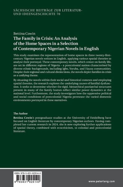 This study examines the representation of home spaces in three twenty-first-century Nigerian novels written in English, applying various spatial theories to analyse their portrayal. These contemporary novels, which center on family life, are set in different regions of Nigeria - a postcolonial nation characterised by diverse ethnic backgrounds, including Igbo, Yoruba, and Hausa communities. Despite their regional and cultural distinctions, the novels depict families in crisis as a unifying theme. By situating the novels within their social and historical contexts and employing spatial…mehr